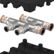 Presskopplingar för plast finns i ett brett sortiment av dimensioner och utföranden – från raka kopplingar och böjar till T-stycken, reduceringar och vägggenomföringar.